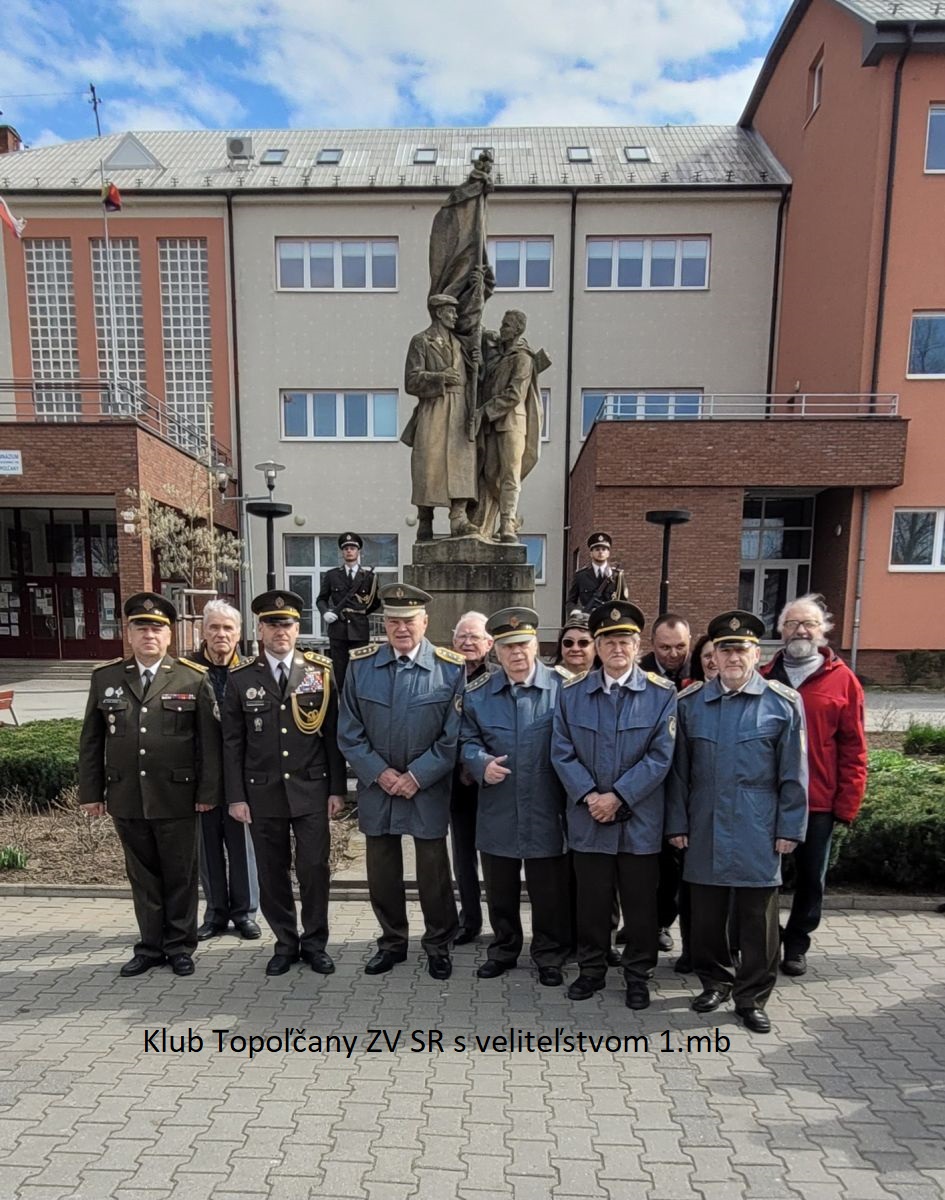Dňa 2.4.2026 sa rada klubu Topoľčany ZV SR (predseda pplk. v.v. RSDr. Ján POLIAČIK, podpredseda rtn. v.z. Ing. Róbert KRÁĽ, tajomníčka rtn. v.v. Viera MIHALIKOVÁ, člen rady npor. v.z. Ing. Jozef ZIMMERMAN) a členovia klubu Topoľčany Zväzu vojakov SR zúčastnili osláv 81.výročia oslobodenia mesta Topoľčany Červenou a Rumunskou armádou, zamestnanci mestského úradu na čele so zástupcom primátorky mesta Jurajom ŽELÍZKOM, zamestnanci okresného úradu na čele s prednostkou Ing. Janou MALINKOVOU, poslanec Národnej rady SR Dr. Pavol GOGA, poslanci Nitrianskeho samosprávneho kraja, veliteľ 1.mechanizovanej brigády plk. gšt. Ing. Gabriel JANCOVICS, zástupca náčelníka štábu 1.mb pplk. Ing. Július PETÖ, starší asistent veliteľa 1.mb rtm. Milan KARAS, členovia Slovenského zväzu protifašistických bojovníkov na čele s predsedníčkou ZO Topoľčany PhDr. Elenou NOVOTNOU, delegácie politických strán. Slávnostný sprievod sprevádzaný vojenskou hudbou išiel mestom od radnice k pamätníku pri Gymnáziu v Topoľčanoch.
