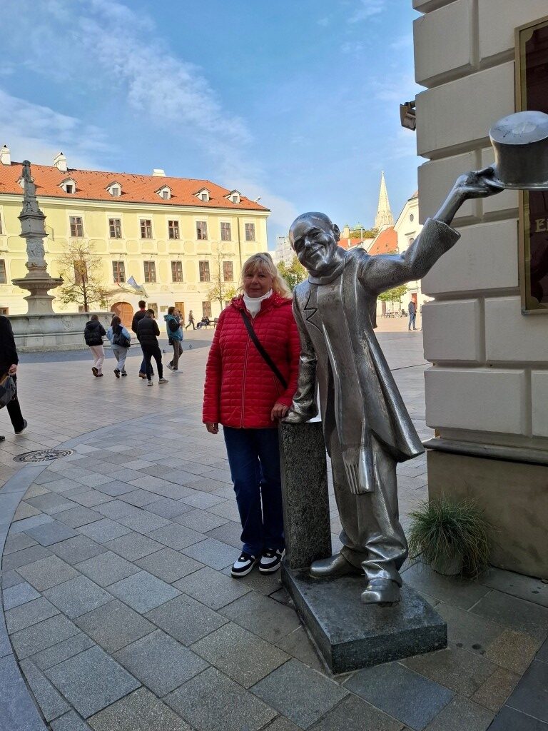 Dňa 22.10.2025 sa na pozvanie Zväzu zdravotne postihnutých Nitrianskeho kraja štyria záujemci z nášho klubu zúčastnili poznávacieho zájazdu hlavného mesta Bratislavy so sprievodkyňou. Prvá zástavka bola na Pamätníku padlým v 2. svetovej vojne na Slavíne, kde sme si pietnou spomienkou uctili pamiatku pochovaných bojovníkov padlých pri oslobodzovaní Bratislavy, prevažne vojakov Červenej armády. Sprievodkyňa nás podrobne zoznámila s históriou tohto miesta. Potom sme sa autobusom presunuli k budove Národnej rady SR, kde práve zasadal parlament a stretli sme aj niektorých poslancov. Pokračovali sme prehliadkou Bratislavského hradu so štyrmi vežičkami a jeho Veľkej hradnej barokovej záhrady. Z hradu bola pekná vyhliadka na celú Bratislavu a Dunaj-druhú najdlhšiu európsku rieku a jeho mosty /Most SNP, Prístavný most, Starý most, Most Lafranconi a najnovší Most Apollo/. Z hradu sme sa so sprievodkyňou a jej vysvetľujúcim slovom presunuli do historickej časti starého mesta a jeho pamiatok. Videli sme Starú  radnicu na Hlavnom námestí, Jezuitský kostol, Maximiliánovu (Rolandovu) fontánu, budovy niektorých veľvyslanectiev, divadlo Pavla Országha Hviezdoslava. Navštívili sme Dóm Svätého Martina, kostolík sv. Mikuláša, kostol Trinitárov, Františkánsky kostol, prešli sme pod Michalskou bránou, videli sme najužší dom v Bratislave, sídlo prezidenta. Bol to krásny a zaujímavý zážitok. Odniesli sme si hromadu nových  vedomostí o Bratislave. Hoci trasa bola dlhá a náročná a ku koncu nás začali bolieť nohy, zájazd sa podaril. Na záver nás autobus odviezol do obchodného centra IKEA, kde sme si po náročnej trase odpočinuli, niektorí aj niečo nakúpili a poobedovali. O 16,00 sme odišli do našich domovov v Nitre. Ďakujeme organizátorom a sprievodkyni zájazdu pani Veronike a šoférovi, že nás šťastne doviezol domov.