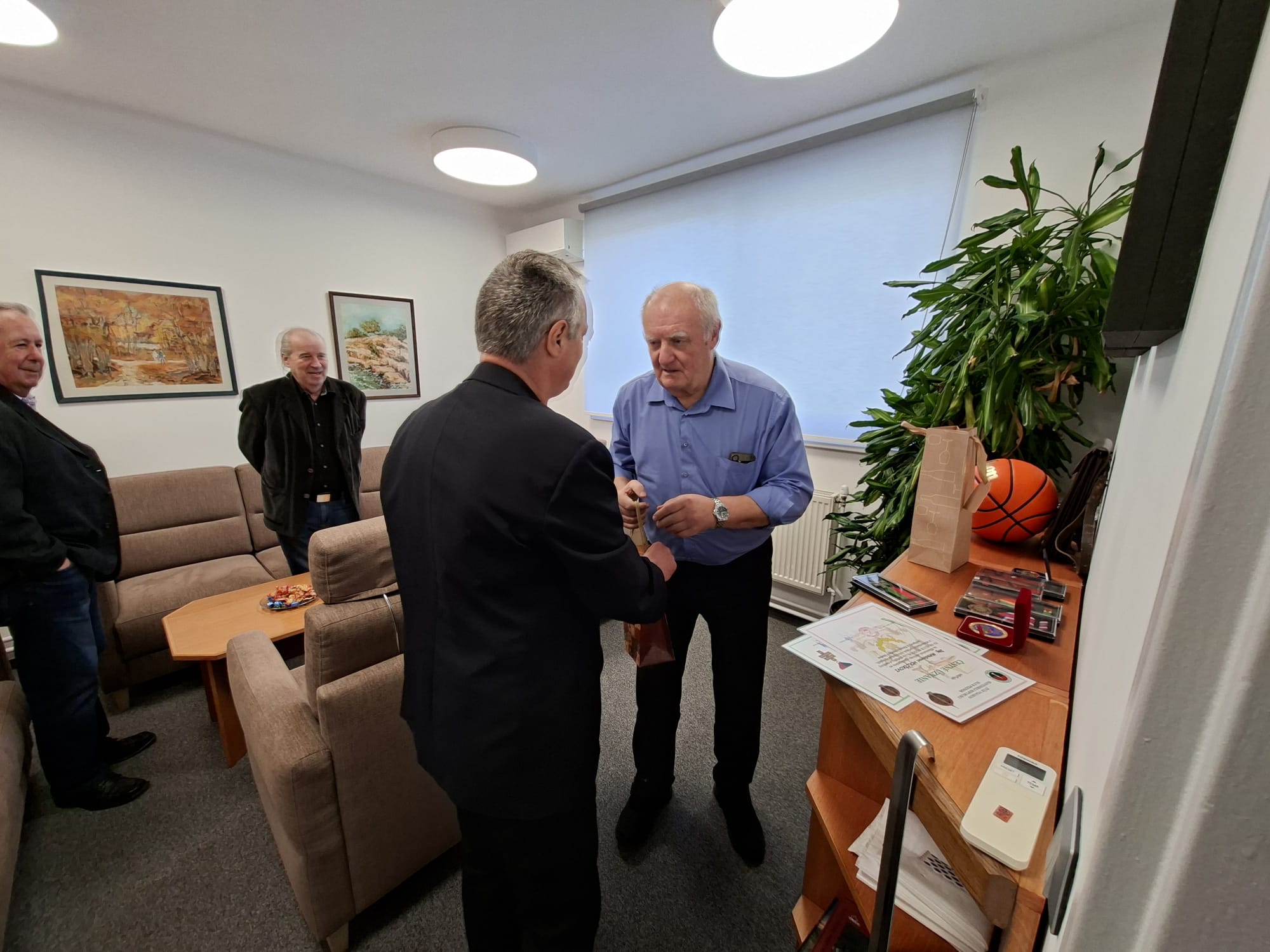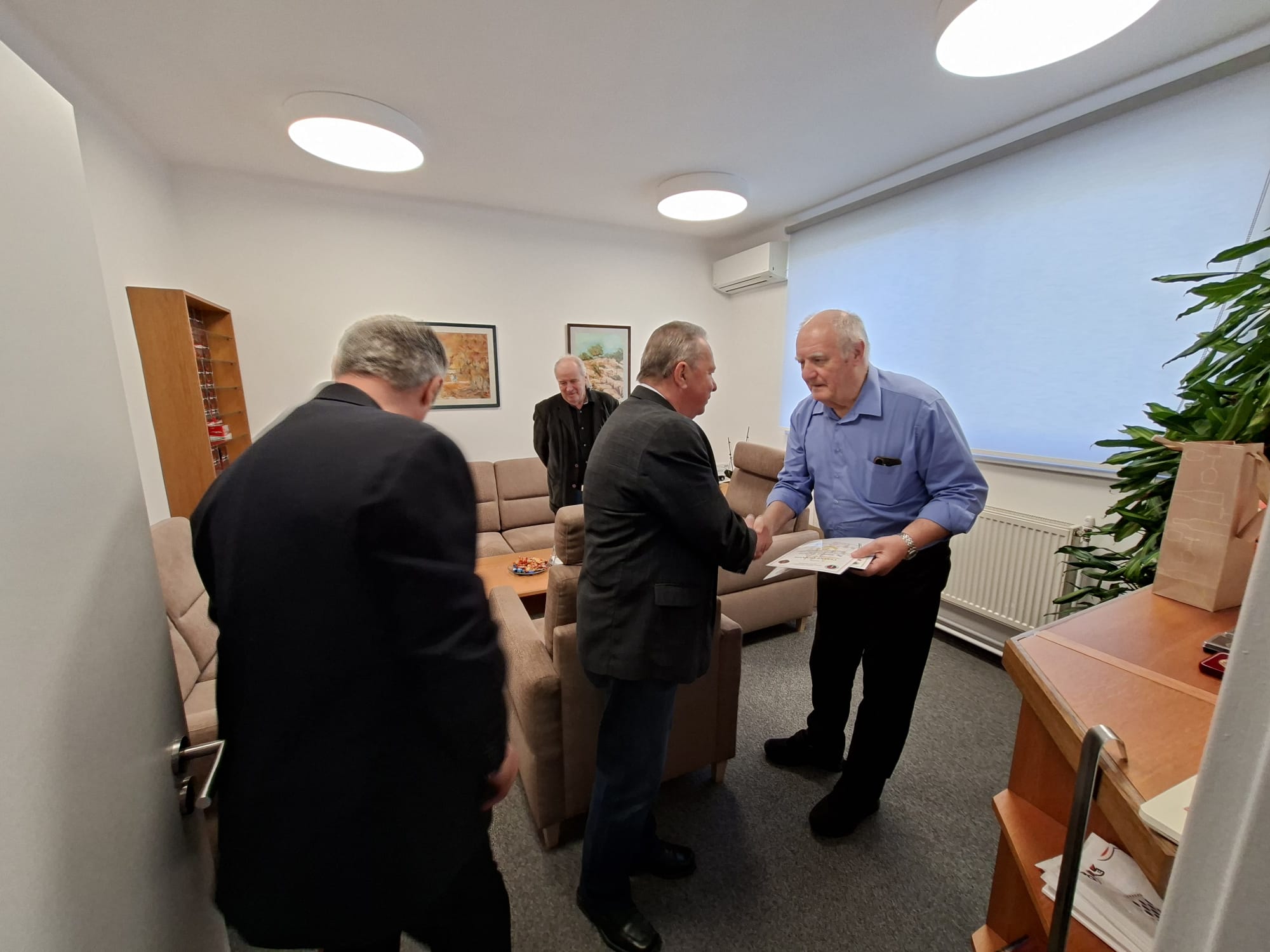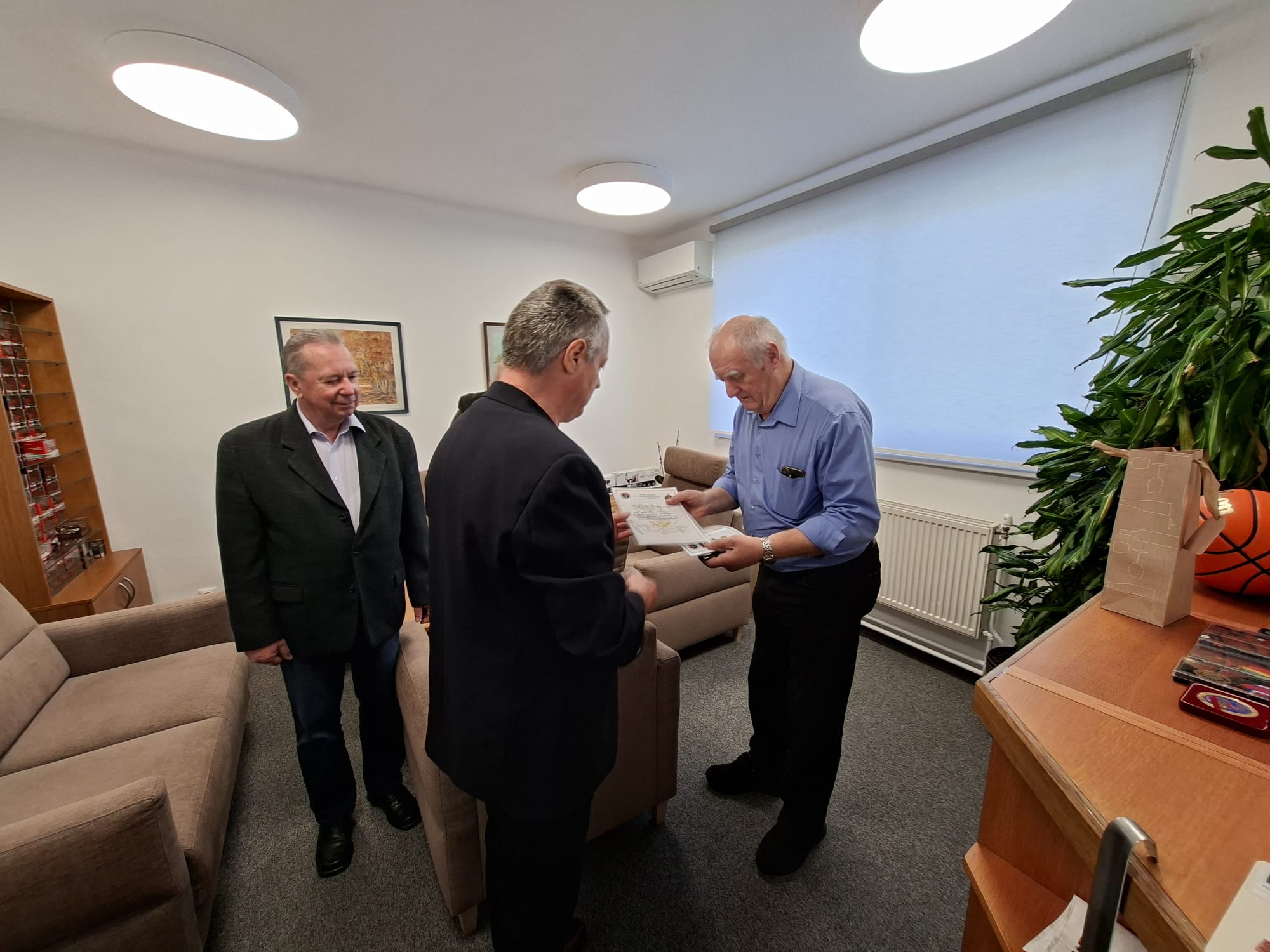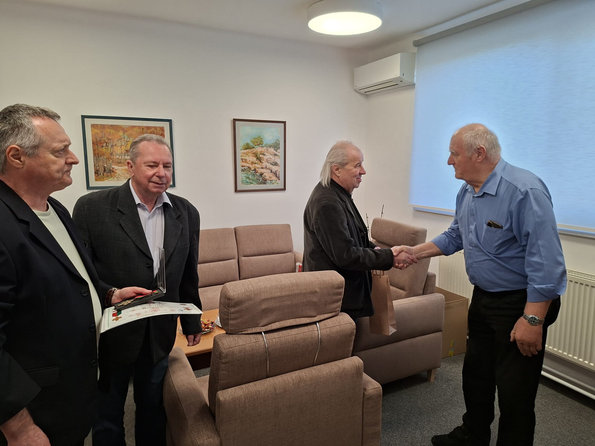 Členovia ZV SR Klub Pezinok plk. v.v. Ing. Stanislav ŠIMON, plk. v.v. Ing. Milan VIGLASKÝ a nprap. v.v. Ernest HAJNOVIČ dňa 8. apríla 2026 o 09:00 hod. odovzdali podporovateľovi/sympatizantovi klubu, pri príležitosti významného životného jubilea 75. narodenín najvyššie klubové ocenenie Pamätný kríž ZV SR Klub Pezinok Ing. Miroslavovi HOLČÍKOVI.