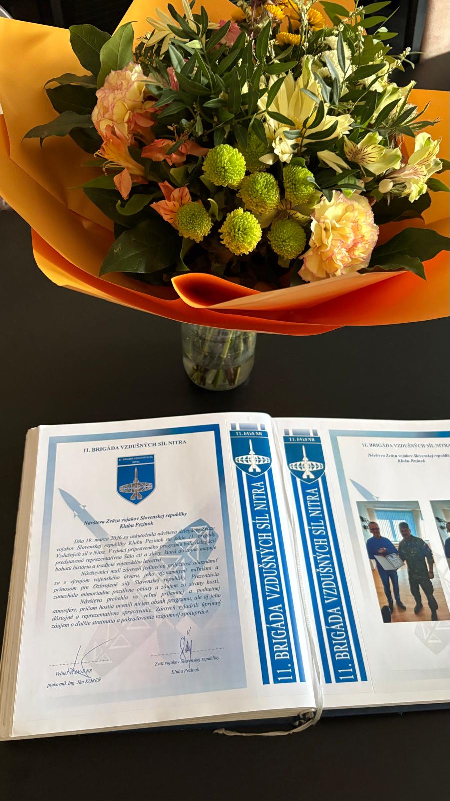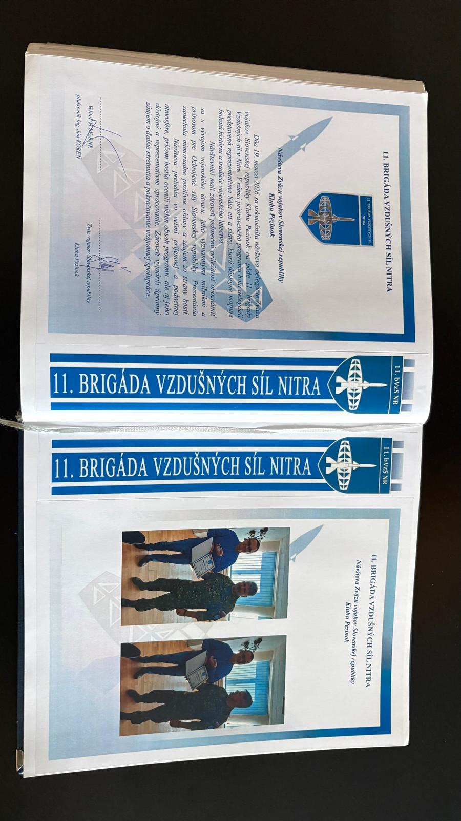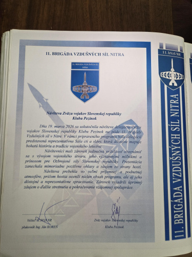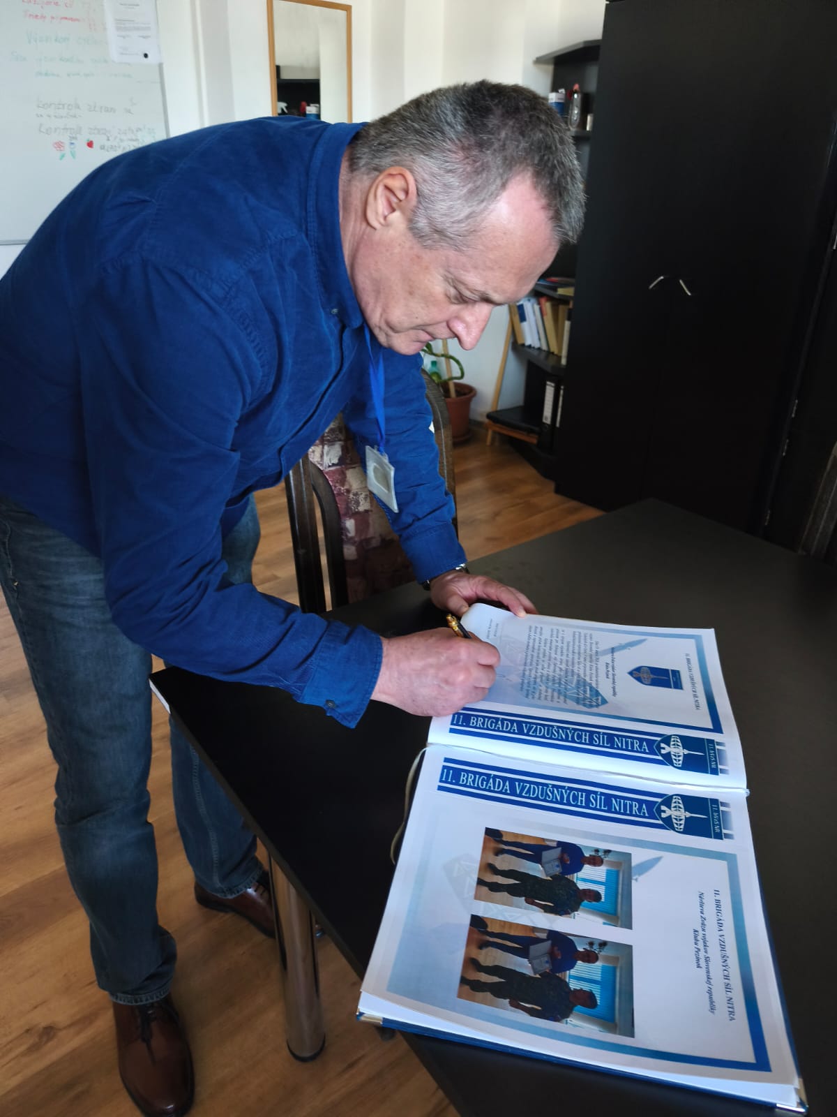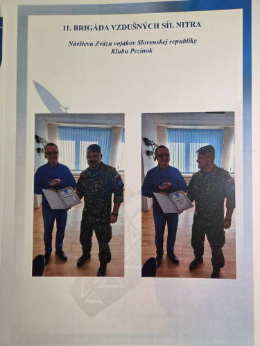 V objekte útvaru nás uvítal veliteľ plk. Ing. Ján Koreň a NŠ pplk. Ing. Andrea Levíková. Po krátkom úvode pri káve sme si prezreli v objekte kasárni protilietadlovú techniku, ktorá bola v minulosti súčasťou výzbroje brigády. Následne sme navštívili Sálu cti a slávy protilietadlovcov, kde sme si prezreli uložené historické artefakty. Veliteľ brigády nám prostredníctvom prezentácie predstavil minulú a súčasnú techniku brigády. Pozreli sme si zaujímavý inštruktážny film o novej technike a výcviku “Roty ochrany a obrany”. Zoznámili sme sa s bojovou technikou, ktorou je vyzbrojená bVzS. Na záver sa predseda klubu a veliteľ brigády podpísali do kroniky brigády.