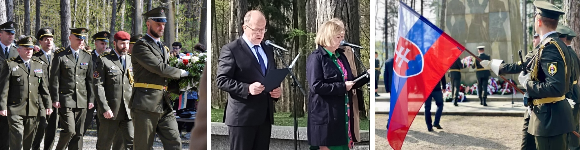 Po položení vencov a kytíc vďaky vystúpili so svojimi príhovormi primátor mesta Trenčín Mgr. Richard Rybníček a pplk. v. v. MUDr. Miroslav Malay, predseda Oblastného výboru SZPB Trenčín.