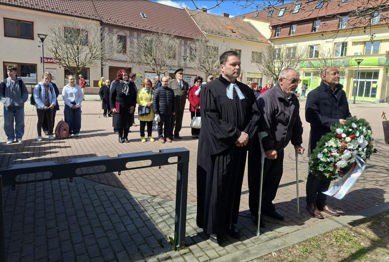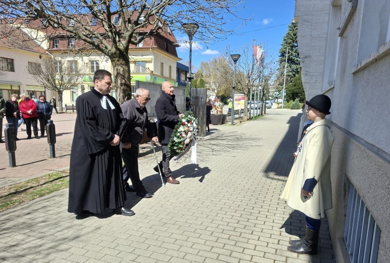 K pamätným tabuliam na budove mestského úradu položili kvety primátor mesta Jaroslav Ciran, predseda domácej ZO SZPB Štefan Majkut a evanjelický farár Ján Lichanec. Spomienka potom pokračovala pietnym aktom na cintoríne pri Dejinnom pamätníku. Primátor Jaroslav Ciran v úvode svojho prejavu zdôraznil, že sloboda nie je samozrejmá. Spomenul štyri roky vojenskej agresie v susednej Ukrajine, ako aj situáciu vo Venezuele a Iráne. Poukázal na svojvôľu mocností a porušovanie medzinárodného práva.