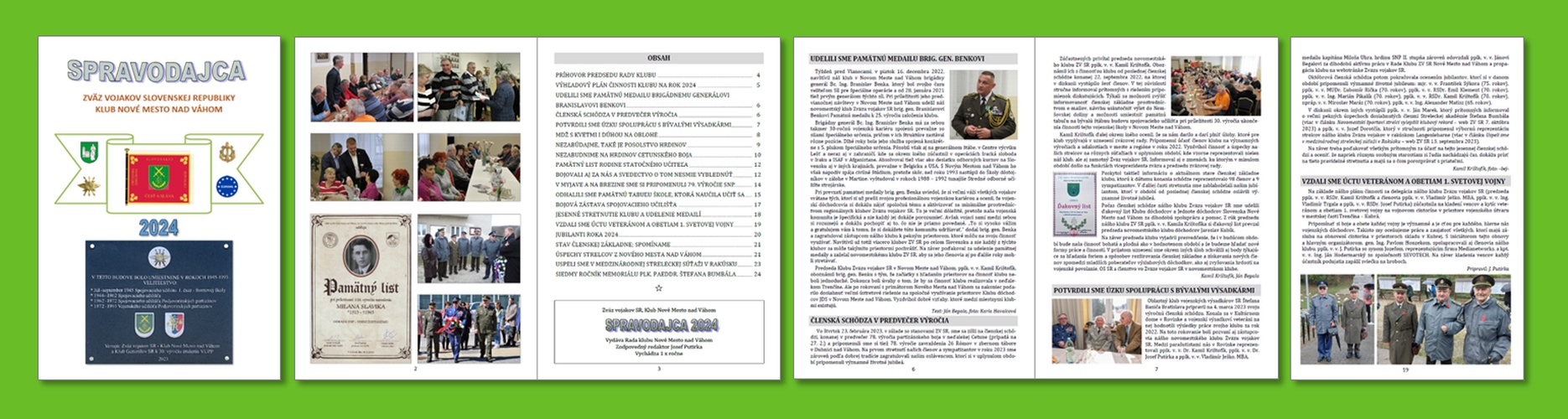 Vážení priatelia, členovia a sympatizanti klubu, práve vyšiel náš klubový časopis „Spravodajca 2024“. V úvode prináša tradičný príhovor predsedu rady klubu a výhľadový plán činnosti klubu na rok 2024. Výber ďalších článkov okrem iného informuje o niektorých našich členských schôdzach, rozvoji spolupráce s bývalými výsadkármi či o účasti na niektorých pietnych spomienkach v našom meste a okolí. Vo výbere je aj reportáž z odhalenia pamätnej tabule Pri príležitosti 30. výročia zrušenia tunajšieho Vojenského učilišťa Podjavorinských partizánov. Nechýbajú ani stránky venované našim jubilantom, členskej základni a tým, s ktorými sme sa museli minulý rok rozlúčiť.